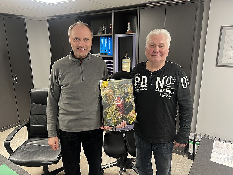 Ich besuchte Geschäftsführer Rico Ulbricht am 14.1., um Glückwünsche der Verwaltung und des Stadtrats zu übermitteln. Von Seiten der Firma war an diesem Tag der langjährige Chef, Uwe Fischer, nach Hainichen gekommen. Er schaut regelmäßig an alter Wirkungsstätte vorbei und ist immer noch Geschäftsführer der Immobilienverwaltungsgesellschaft der Dachdecker GmbH.
