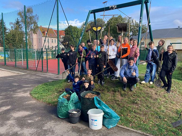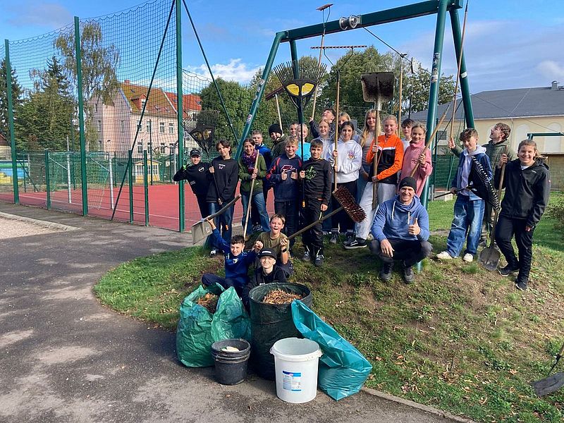 Am 26. September 2025 wollten wir, die Klasse 7a der Oberschule Hainichen, nicht den ganzen Tag in der Schule sitzen, sondern den Spiel- und Sportplatz (Bolzer beim Edeka) in Hainichen aufräumen. Unser Ziel war es, den Platz sauberer und schöner zu machen, damit er weiterhin gern und ohne Gefahr von Kindern, Jugendlichen und Familien genutzt werden kann.