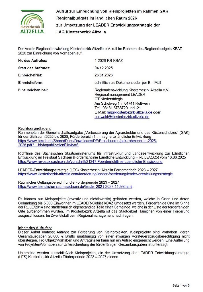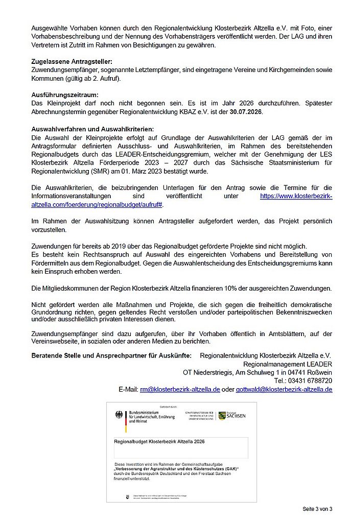 Aufruf zur Einreichung von Kleinprojekten im Rahmen GAK Regionalbudgets im ländlichen Raum 2026