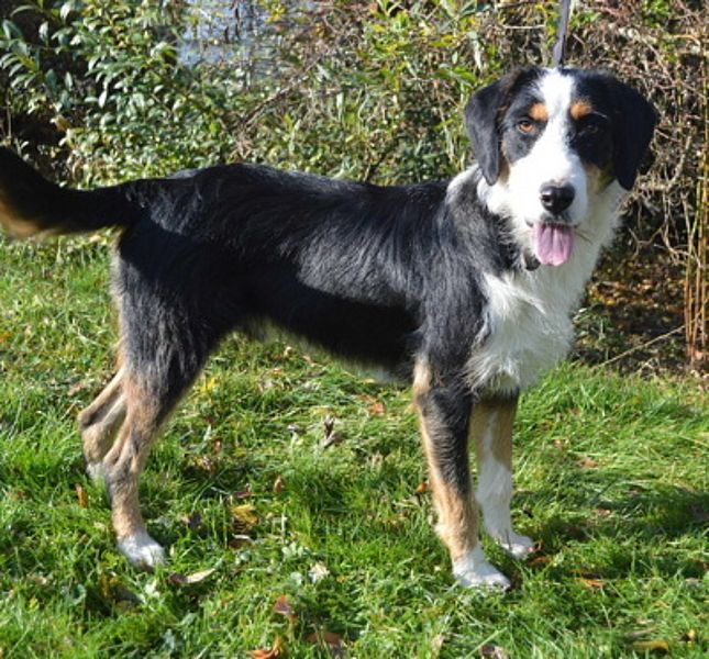 Unser wunderhübscher Mischlingsrüde „Ben“ ist eine sehr gelungene Mischung, es könnte diverse Rassen vom Schnauzer über Appenzeller bis Entlebucher mitgemischt haben. So richtig weiß das jedoch keiner, doch die außergewöhnlichsten Mischungen sind oft die Besten. Ben hat eine Schulterhöhe ca. 55 cm und ist erst 1 Jahr alt. Er ist Anfang vorsichtig bei neuen Personen und kein Draufgängen. Ist das Eis einmal geschmolzen ist Ben sehr lieb, aufgeweckt und aufgeschlossen. Anfangs benötigt er deshalb etwas mehr Zeit um Vertrauen aufzubauen. Über die bekannten Zweibeiner freut er sich jedes Mal sehr, unterbricht sofort sein Spiel und läuft auf uns Menschen zu und bittet um eine Streicheleinheit. Da er entsprechend seiner Rasse sehr bewegungsfreudig ist, wird er nur in Haus mit eingezäunten Garten (min. 1,20 m hoch) abgegeben, damit er auch ohne Leine im Grundstück mal richtig toben kann. Größere Kinder (ab 6 Jahren) können gern im neuen Zuhause vorhanden sein, Katzen sollten besser nicht vorhanden sein. Ben reagiert auch Anfangs beim Gassigehen eher zurückhaltend und benötigt deshalb geduldige und ruhige Menschen, die nicht gleich einen perfekten Hund erwarten. Bei Hundebegegnungen bleibt er absolut ruhig und gelassen. Im Tierheim lebt er mit einem weiteren Rüden zusammen, sie spielen und toben den ganzen Tag gemeinsam.