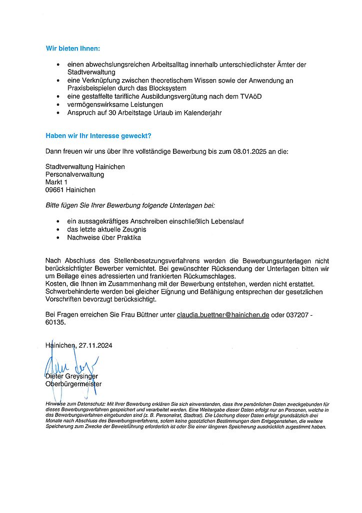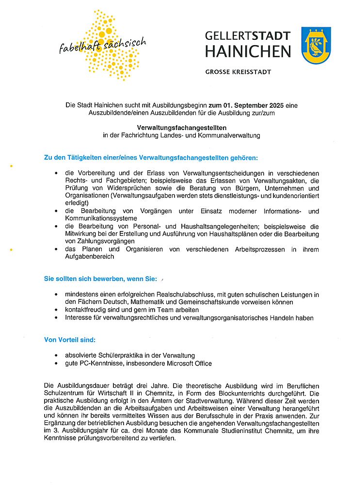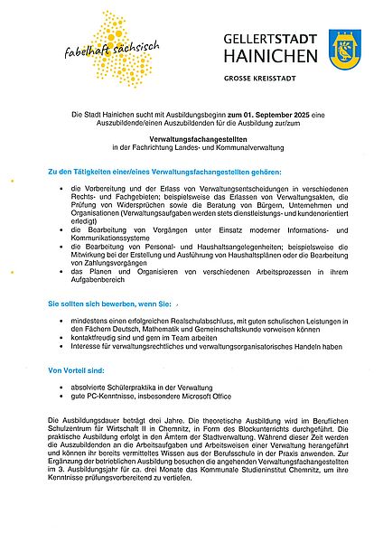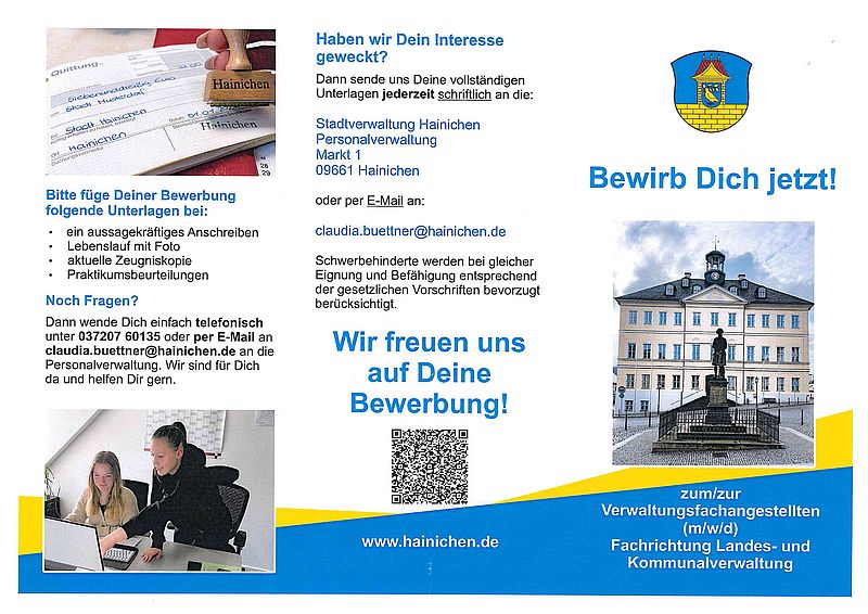 Bewirb Dich jetzt! Stadtverwaltung Hainichen bietet Ausbildungsplatz