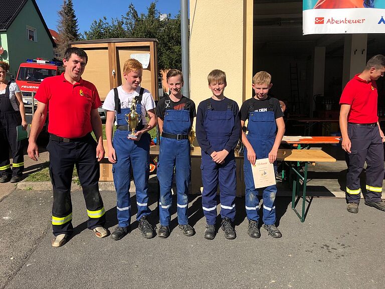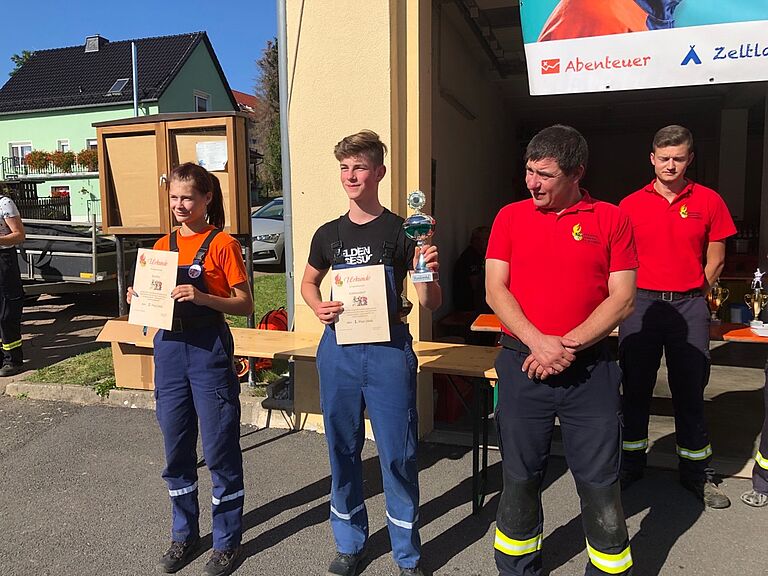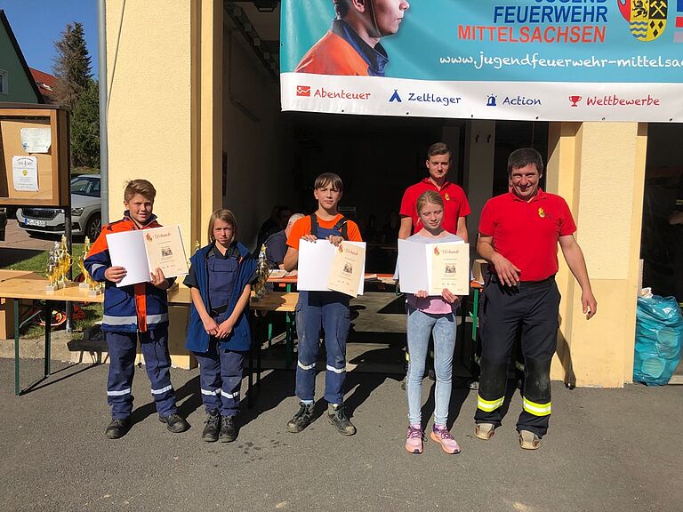 Die Wiese oberhalb des Cunnersdorfer Feuerwehrgerätehauses war dabei ein sehr gut geeignetes Gelände für den Wettkampf. Neben den Cunnersdorfer Feuerwehrleuten waren auch Kameraden aus Bockendorf und Eulendorf als Kampfrichter mit im Einsatz. Auch die Hainichener Jugendfeuerwehr machte beim Wettkampf natürlich mit. Hier ist seit Jahren Uwe Schulz für die Nachwuchsarbeit verantwortlich. Er wird dabei von weiteren Kameraden unterstützt.
