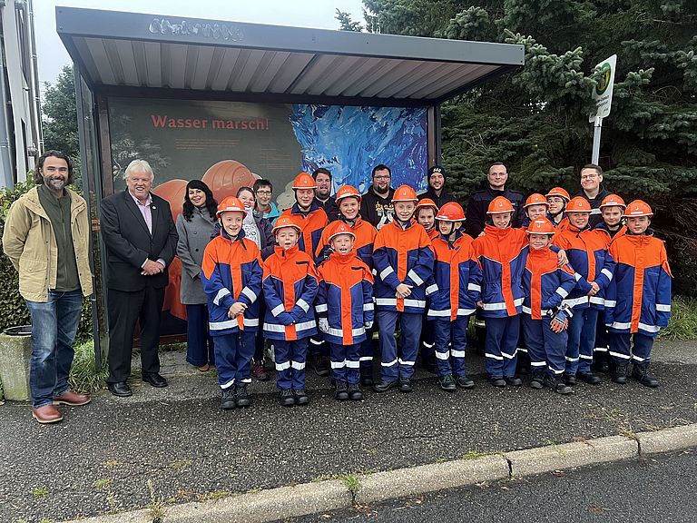 Insgesamt gab es mit der Jugendfeuerwehr drei Termine. Während das erste Treffen dem gegenseitigen Kennenlernen und für ein ausgiebiges Fotoshooting diente, wurden beim zweiten Zusammentreffen das Bildkonzept und die Motive für die Gestaltung durch Familie Duarte erklärt. Beim dritten Termin haben die älteren Mitglieder der Jugendfeuerwehr beim Entfernen der Plakatierungs-Schichten und beim Reinigen der Bushaltestelle geholfen. Letzte Reste wurden dann durch den Bauhof entfernt.
