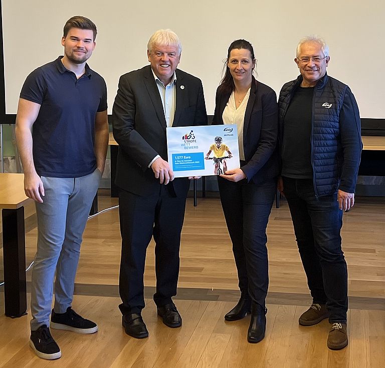 Mit insgesamt 235,34 erradelten Kilometern erkämpften wir uns stolz neben 22 anderen Städten den 6. Platz und auch in der Kinderwertung schnitten wir sehr gut ab. Damit wurde das Ergebnis des Vorjahres nochmals gesteigert – 2024 waren 233,72 Kilometer erreicht worden. Seit letztem Jahr wird jeder gefahrene Kilometer mit 5 Euro honoriert, was maßgeblich zum starken Gesamtergebnis beitrug und auch den Bürgermeisterbonus in Höhe von 400 € sicherten wir uns beim Quiz.