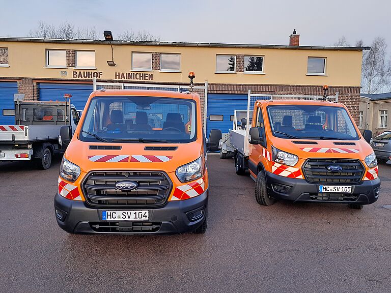Es handelt sich hierbei um 2 Transporter der Marke Ford Transit mit einer Motorleistung von jeweils 96 Kilowatt, Allradfahrgestell, 3,5 Tonnen zulässigem Gesamtgewicht und 3,5 Tonnen Anhängelast sowie einem dreiseitigen Kommunalkipperaufbau der Fa. Kunath Fahrzeugbau aus Roßwein.