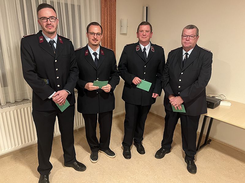 Für 20 Jahre aktiven Dienst in der Feuerwehr wurden der Wehrleiter selber (Andy Dramert), sein Stellvertreter (Patrick Ettelt) und der frühere stv. Wehrleiter (Sirko König) geehrt. Sie traten übrigens alle an einem historischen Datum in die Jugendfeuerwehr ein- am 11.9.2001. 2005 erfolgte dann der Wechsel in die Erwachsenenwehr.