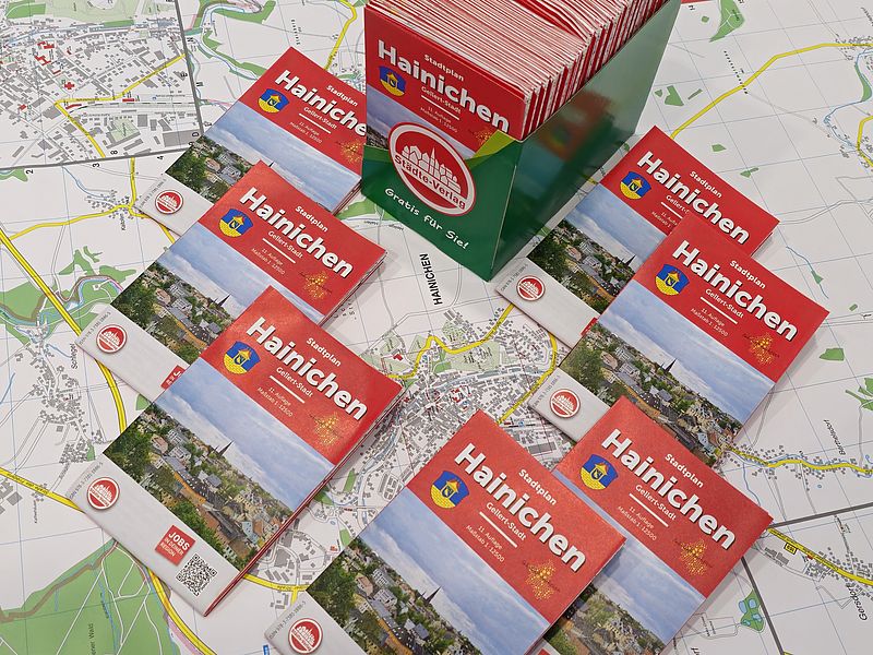 In der vergangenen Woche ist die aktuelle, mittlerweile elfte Auflage des Hainichener Taschenstadtplanes erschienen. In Zusammenarbeit mit der Stadt Hainichen gibt der Städte-Verlag aus Fellbach in Baden-Württemberg das informative Faltblatt seit vielen Jahren zuverlässig im regelmäßigen Abstand von zwei Jahren heraus. Der Plan enthält die Kartendaten der Innenstadt von Hainichen und von allen Ortsteilen.
