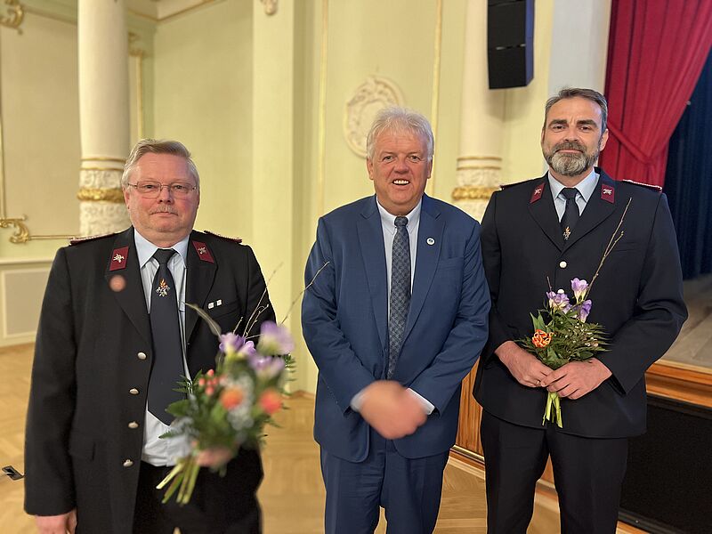 Mit einem Blumenstrauß und dem Applaus der Teilnehmer der Stadtratssitzung wurden Jörg Nollau und Norman Teuchert für ihre Bereitschaft honoriert, dieses verantwortungsvolle Amt auszuüben.