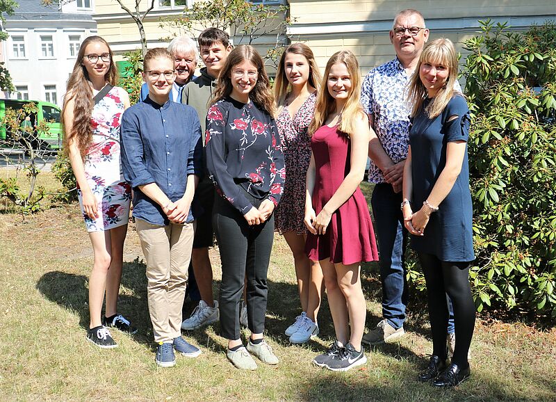 Auch der Direktor des Frankenberger Martin-Luther-Gymnasiums, Ingo Pezold, nahm sich zu diesem Anlass Zeit und kam eigens in unsere Stadt, um einige der Besten „seines“ Abiturjahrgangs 2022 kurz nach der Abiturfeier noch einmal zu treffen.