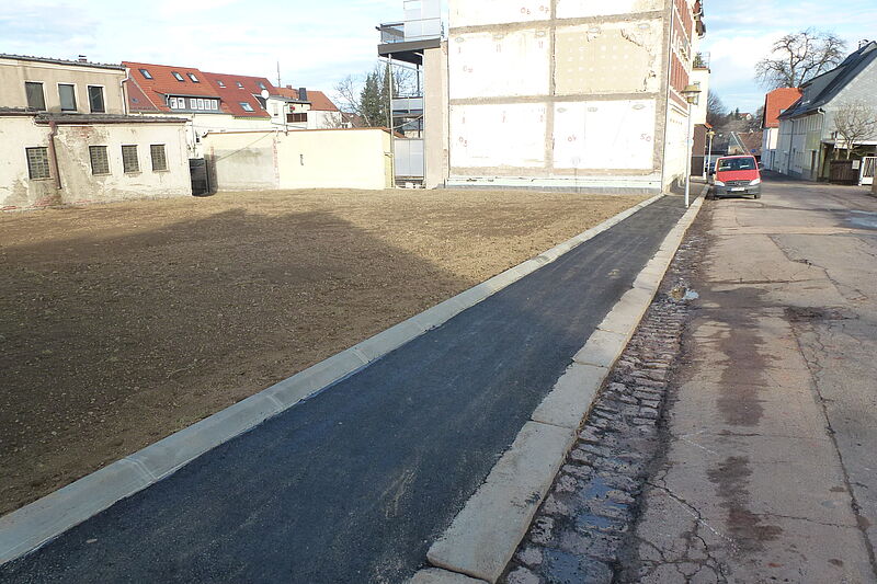 Mit dem Bitumeneinbau im Bereich vor der ehemaligen SED-Kreisleitung auf der Turnerstraße 12/14 am 17.12.20 endete die Baumaßnahme des Abrisses des ruinösen Gebäudes durch die Firma Sippel aus Aue.