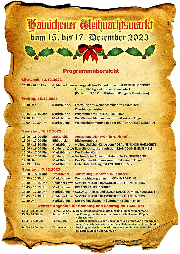 Weihnachtsmarkt in Hainichen - 15. 12. 2023 - 17. 12. 2023