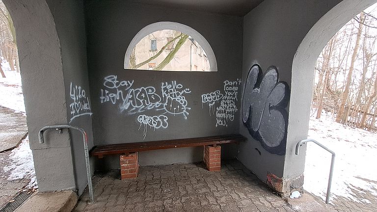 Bänke, Verkehrsschilder, die Ufermauern der Striegis, Häuserwände und viele Orte mehr „erstrahlen“ mit den genannten Schmierereien. Nichts ist sicher vor den Schmierfinken. Die zum Parkpflegetag liebevoll neu gestrichene Elektrische Kirche am Eingangstor zum Stadtpark wurde durch die Vandalen schon vor einiger Zeit wieder in den alten Zustand versetzt.