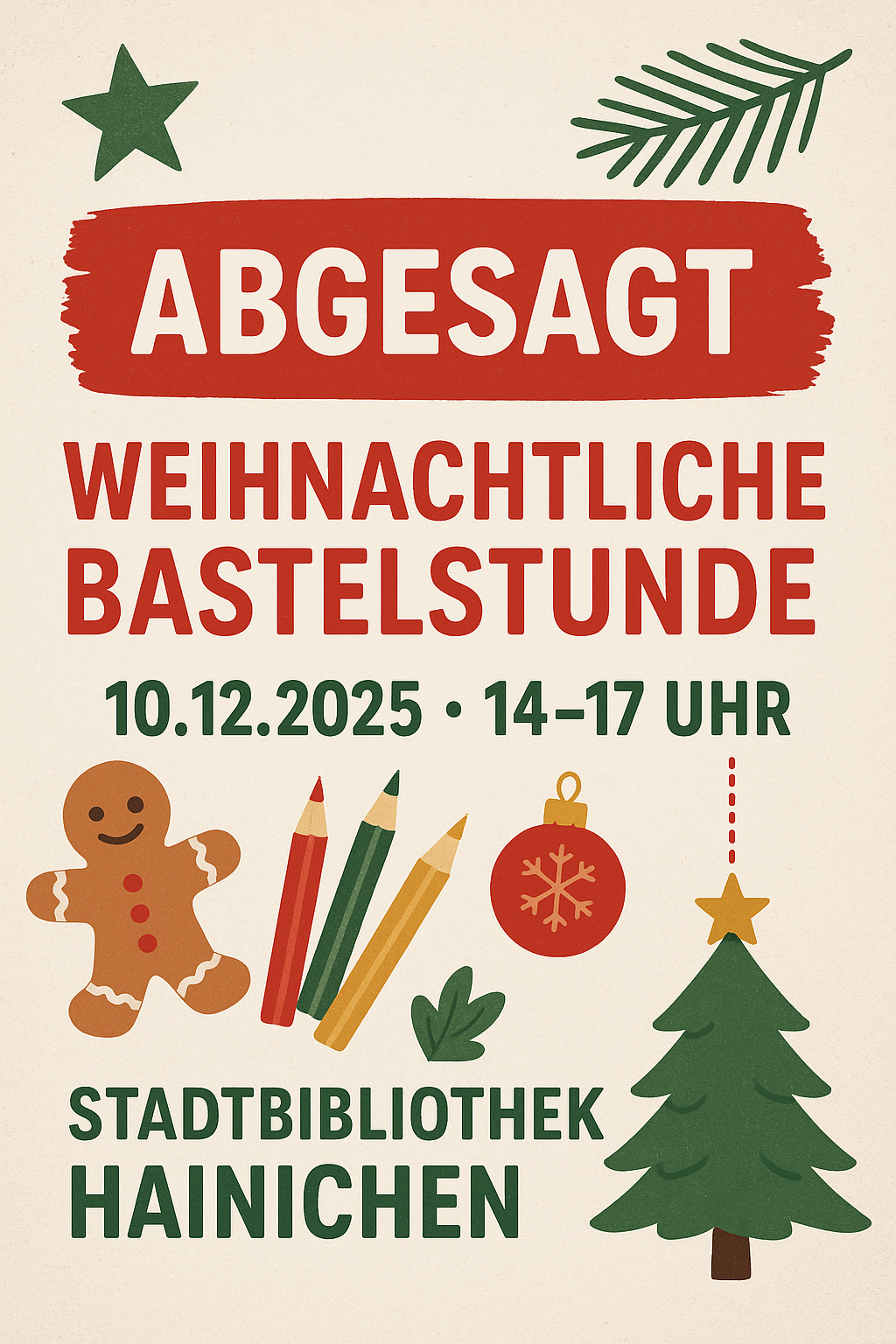 Aufgrund von Krankheit muss die Bastelstunde leider ausfallen.
